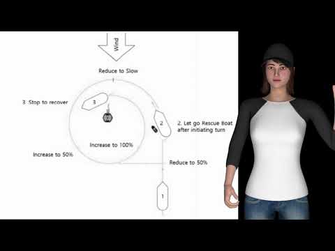 6 Slow down or stop , to lauch and recover rescue boat on leeward side, inside the circle.